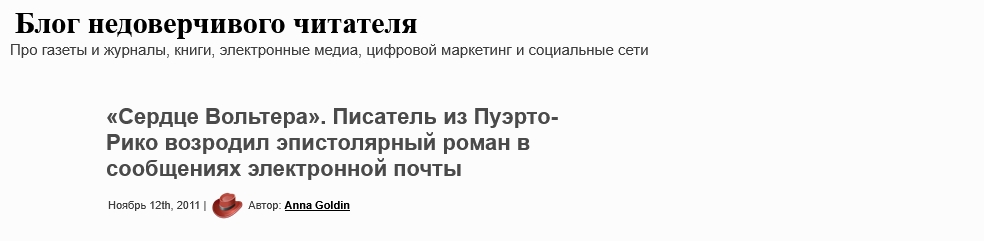 Originalmente, planeaba escribir algo sentimental sobre la esencia innovadora y omnipresente de Internet, gracias a la cual la literatura en lengua rusa acaba de recuperar la novela epistolar, escrita en mensajes de correo electrónico. Pero resultó… Bueno, ahora lo entenderán ustedes mismos.
